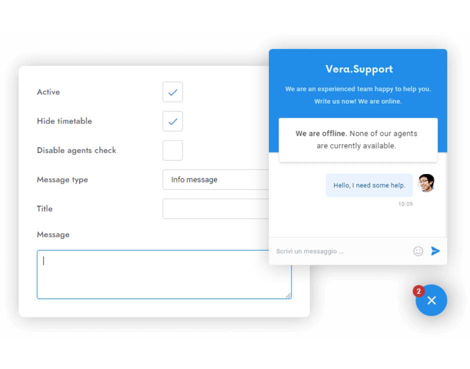 Stay connected even when your team is unavailable. With Vera Support, send a message or display a custom banner whenever it’s outside office hours or all agents are offline. Personalize messages to appear exactly when and how you want.