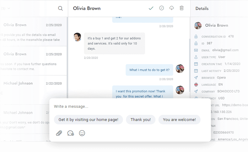 Keep every customer interaction organized and accessible in one place with Vera Support’s intuitive interface. Instantly search past messages, track user activity, and monitor when customers are online or typing—everything you need to stay in control.