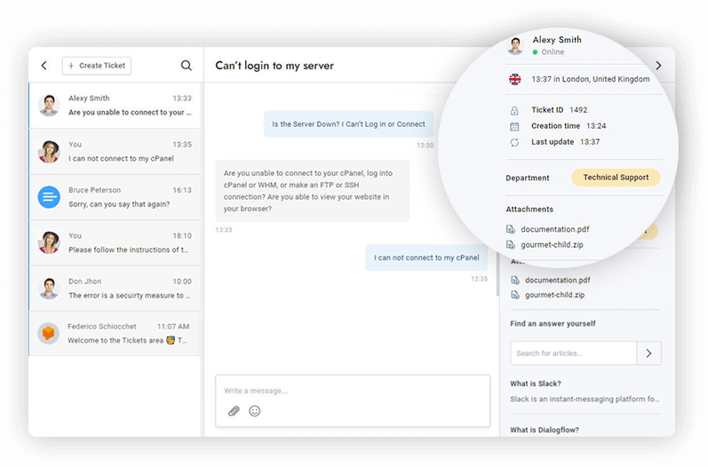 Save time and streamline your support with Vera Support’s Smart Reply. Using artificial intelligence, it provides agents with suggested responses in real time, automatically adapting to the user’s language. Suggestions are powered by both OpenAI and Dialogflow, helping agents respond faster and more accurately.